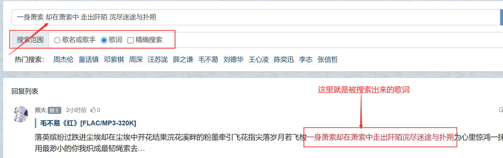 注意:如果搜索歌词没有这首歌曲,但是并不代表本站就没有这首歌,大家可以换上面两种方式搜索一下。